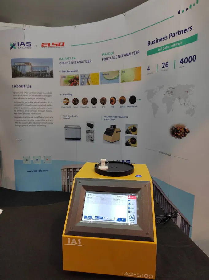 Il compatto e portatile IAS-6100 ha attirato folle allo stand IAS. Integrando la tecnologia avanzata di spettroscopia digitale per l'esposizione, offre eccezionale sensibilità e precisione in un design snello. Capace di analisi rapida e non distruttiva in meno di due minuti, fornisce informazioni critiche su parametri vitali per la qualità della produzione e il controllo dei costi. Questi includono Acido Grasso Libero (FFA), Umidità, DOBI e Contenuto di Olio in campioni come Olio di Palma Grezzo (CPO), Noci di Palma e scarti di produzione. La sua versatilità si estende a varie forme di campione – particelle fini, polveri, scaglie e paste – soddisfacendo le esigenze di test rapidi lungo l'intera catena del valore, dall'accettazione delle materie prime e i processi produttivi all'ispezione del prodotto finale.