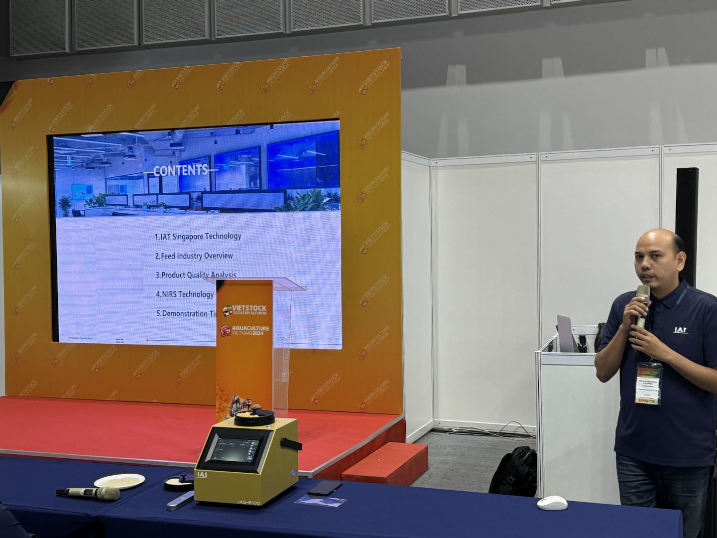 The VIETSTOCK EXPO & FORUM 2024, held over the three days at the Saigon Convention & Exhibition Centre in Ho Chi Minh City, Vietnam, concluded successfully. As Vietnam's leading international exhibition for the feed, livestock, aquaculture and meat industries, the event brought together over 400 top companies from more than 50 countries and regions, drawing more than 13,000 industry professional worldwide. IAT made a striking impact at the expo, showcasing its latest NIR spectroscopy technology.